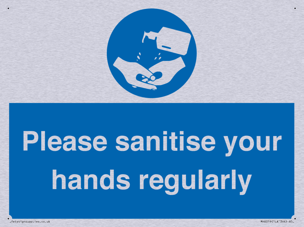 Sign Text: Please sanitise your hands regularly