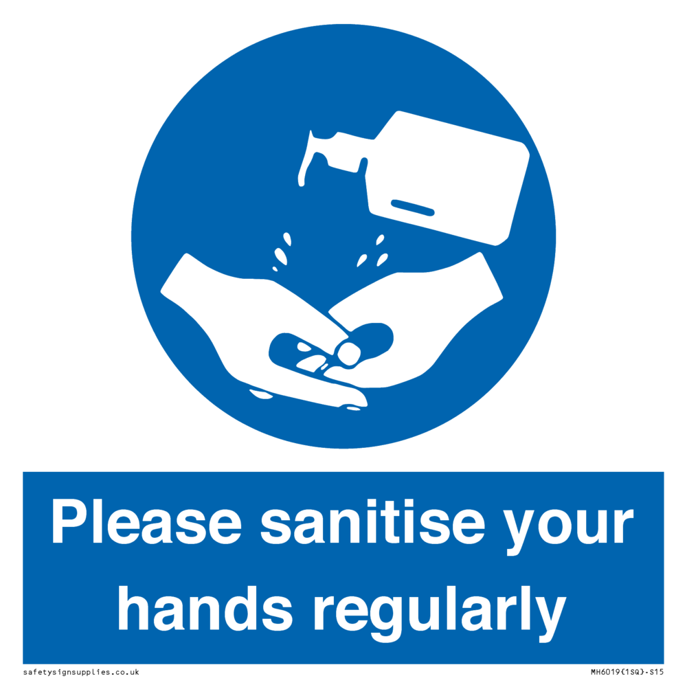 Sign Text: Please sanitise your hands regularly