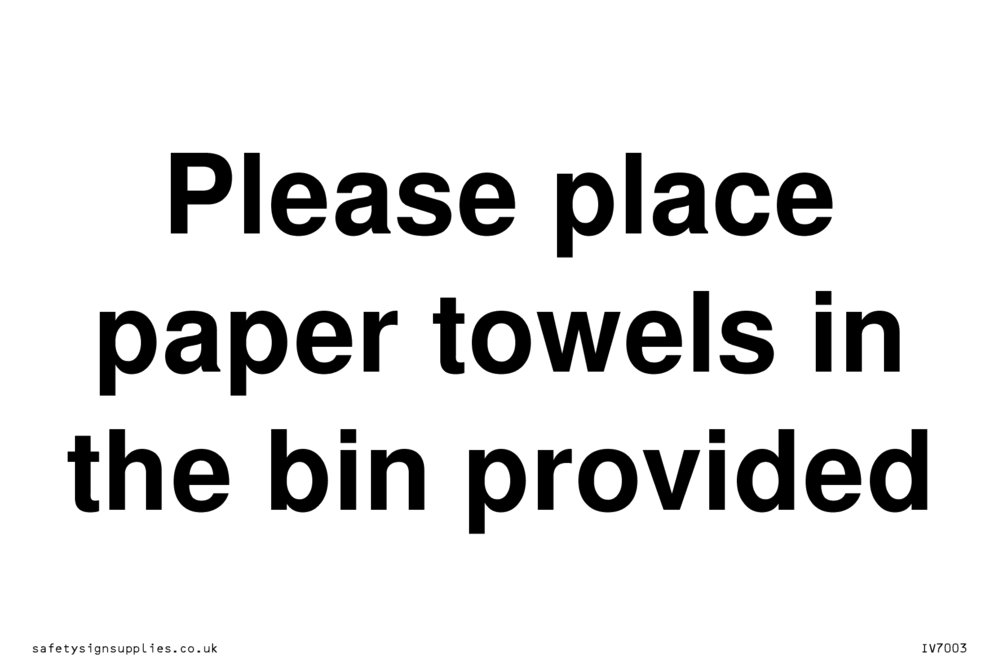 Sign Text: Please place paper towels in the bin provided