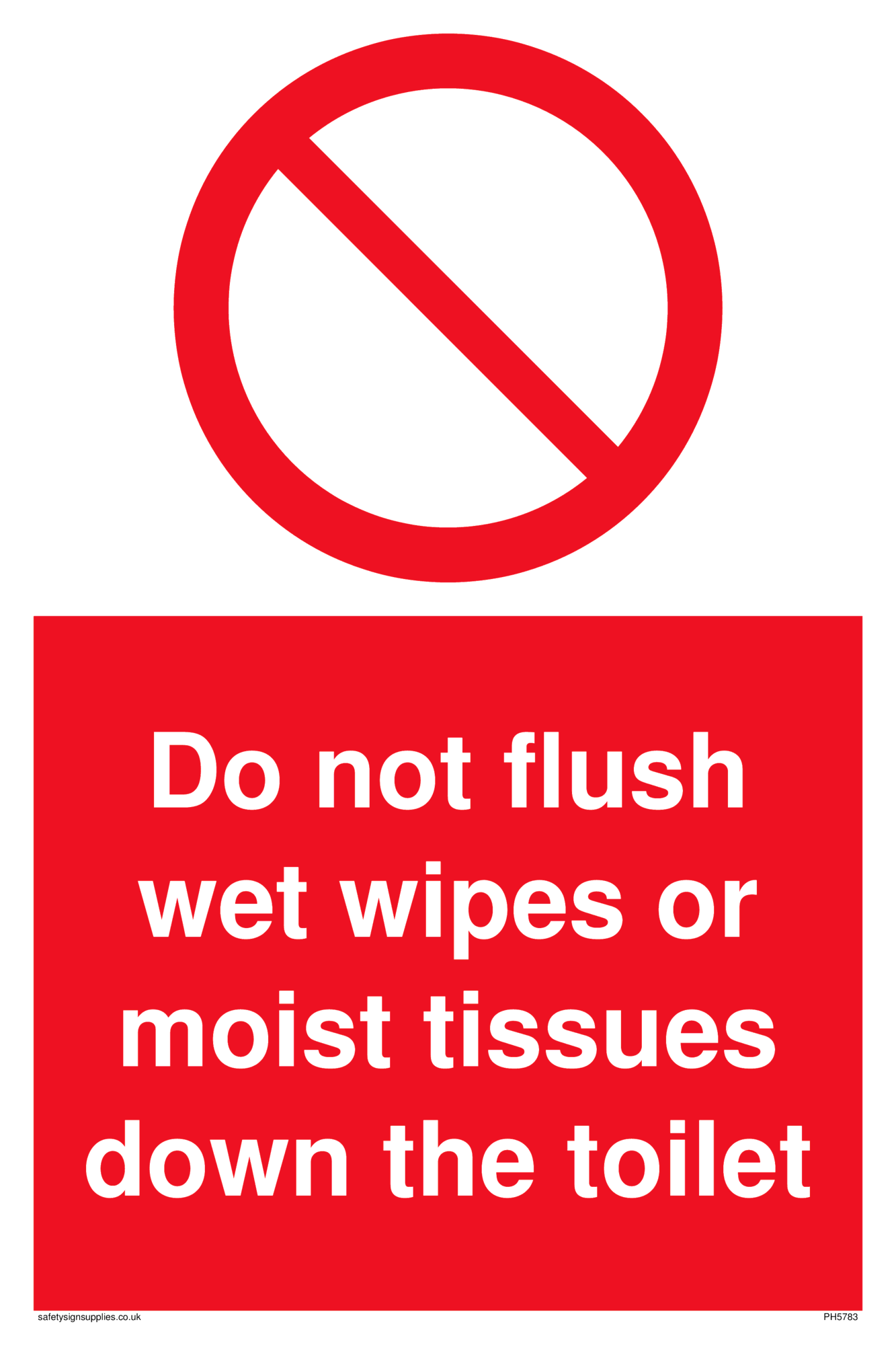 Sign Text: Do not flush wet wipes or moist tissues down the toilet