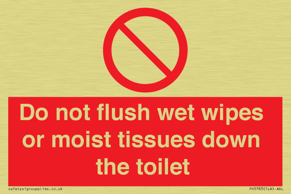 Sign Text: Do not flush wet wipes or moist tissues down the toilet