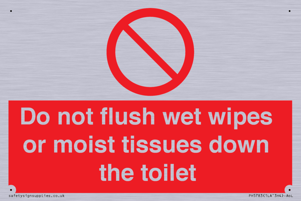 Sign Text: Do not flush wet wipes or moist tissues down the toilet