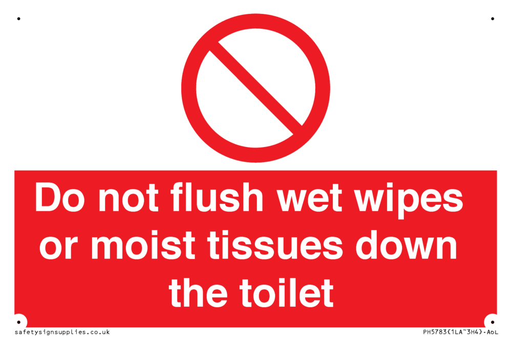 Sign Text: Do not flush wet wipes or moist tissues down the toilet