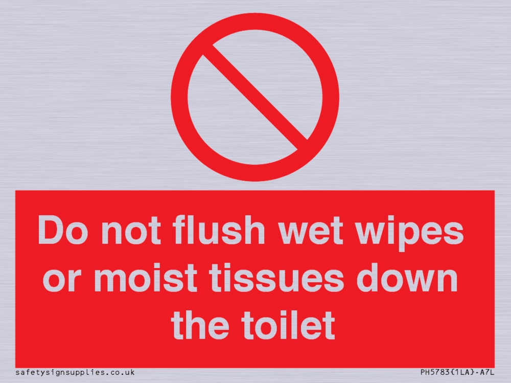 Sign Text: Do not flush wet wipes or moist tissues down the toilet