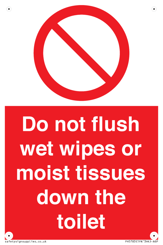 Sign Text: Do not flush wet wipes or moist tissues down the toilet