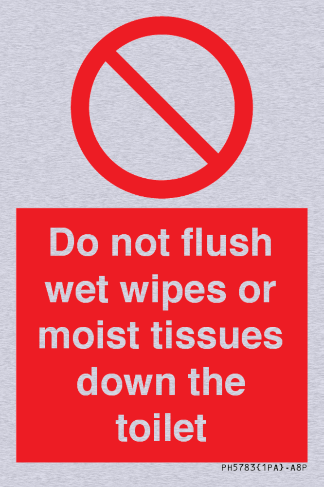 Sign Text: Do not flush wet wipes or moist tissues down the toilet