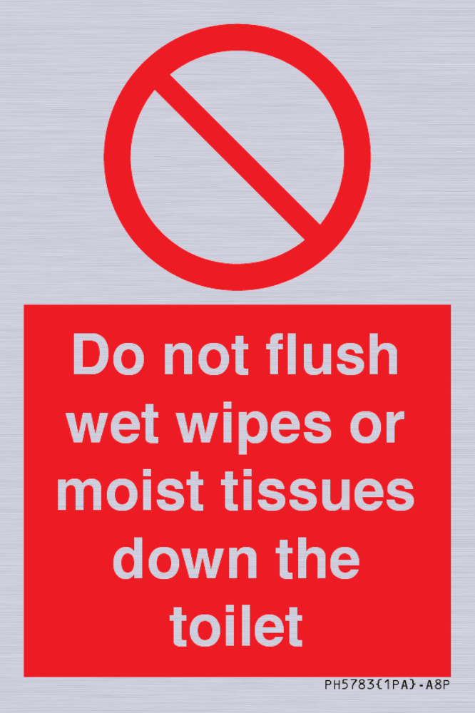 Sign Text: Do not flush wet wipes or moist tissues down the toilet