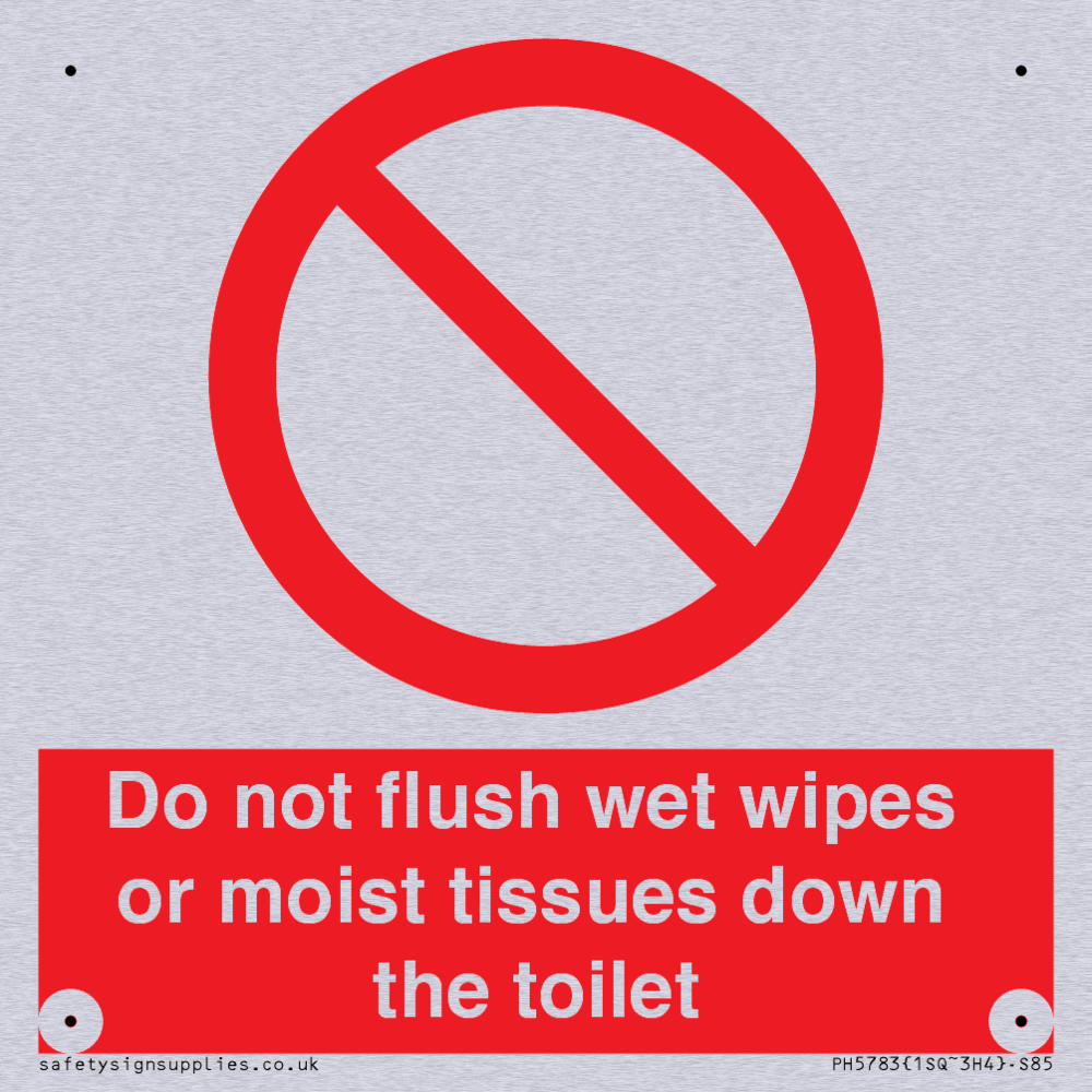 Sign Text: Do not flush wet wipes or moist tissues down the toilet