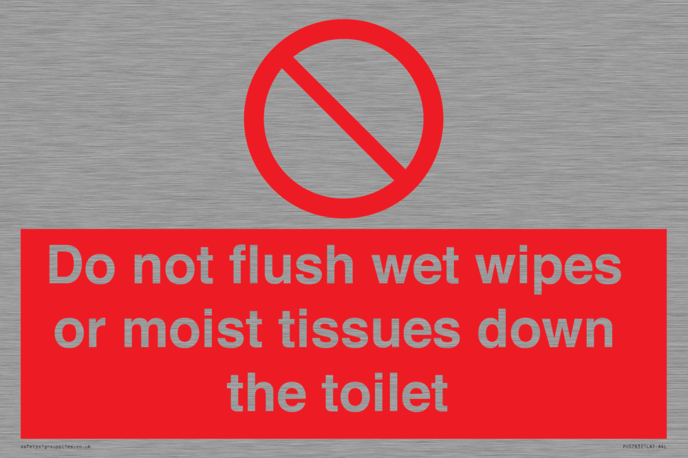 Sign Text: Do not flush wet wipes or moist tissues down the toilet