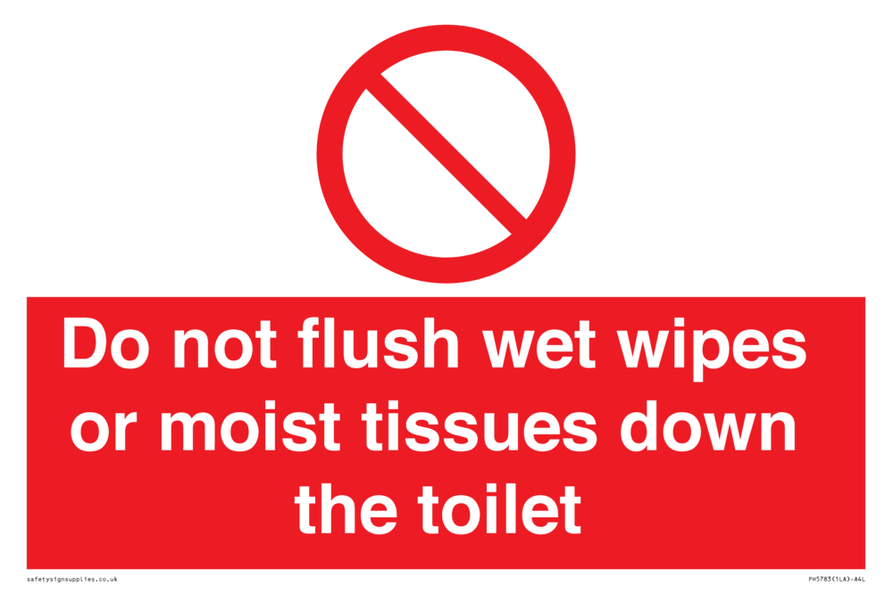 Sign Text: Do not flush wet wipes or moist tissues down the toilet