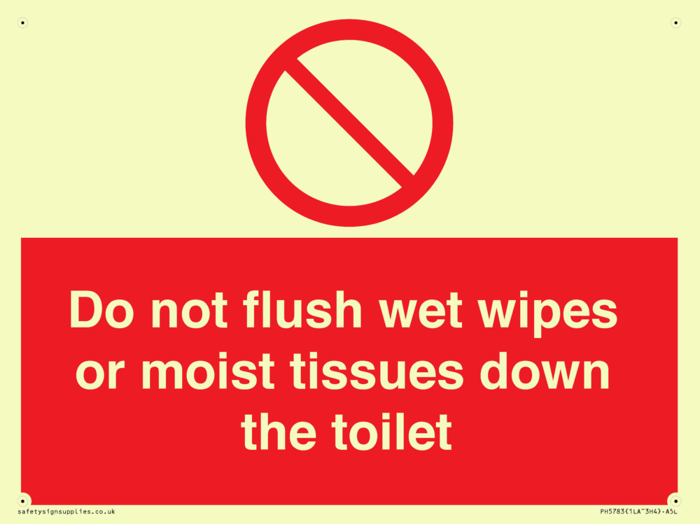 Sign Text: Do not flush wet wipes or moist tissues down the toilet