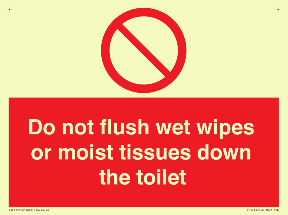 Sign Text: Do not flush wet wipes or moist tissues down the toilet