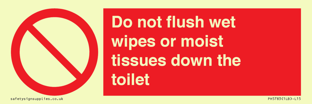 Sign Text: Do not flush wet wipes or moist tissues down the toilet