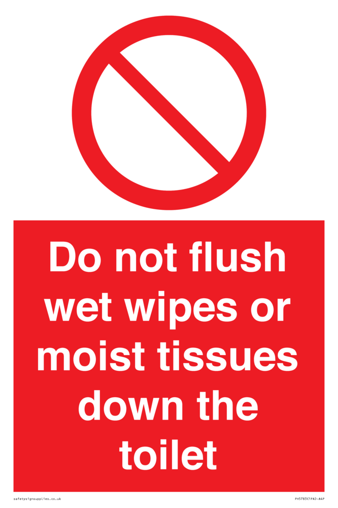 Sign Text: Do not flush wet wipes or moist tissues down the toilet