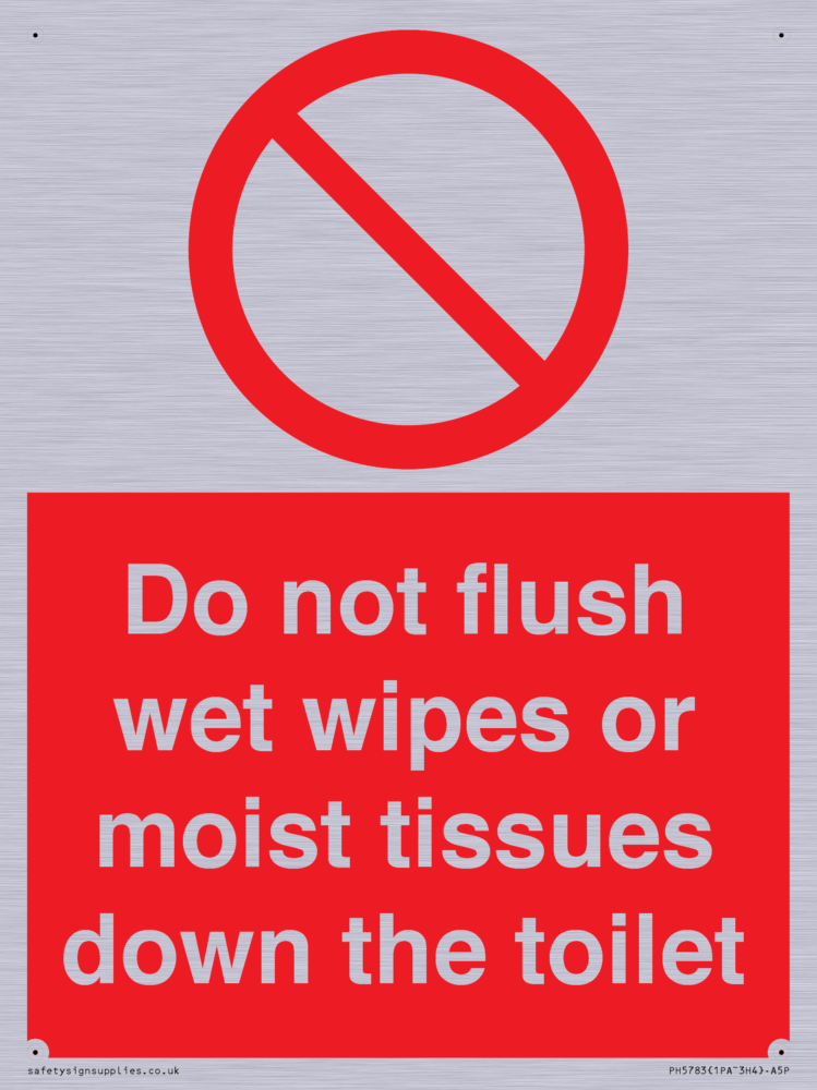 Sign Text: Do not flush wet wipes or moist tissues down the toilet