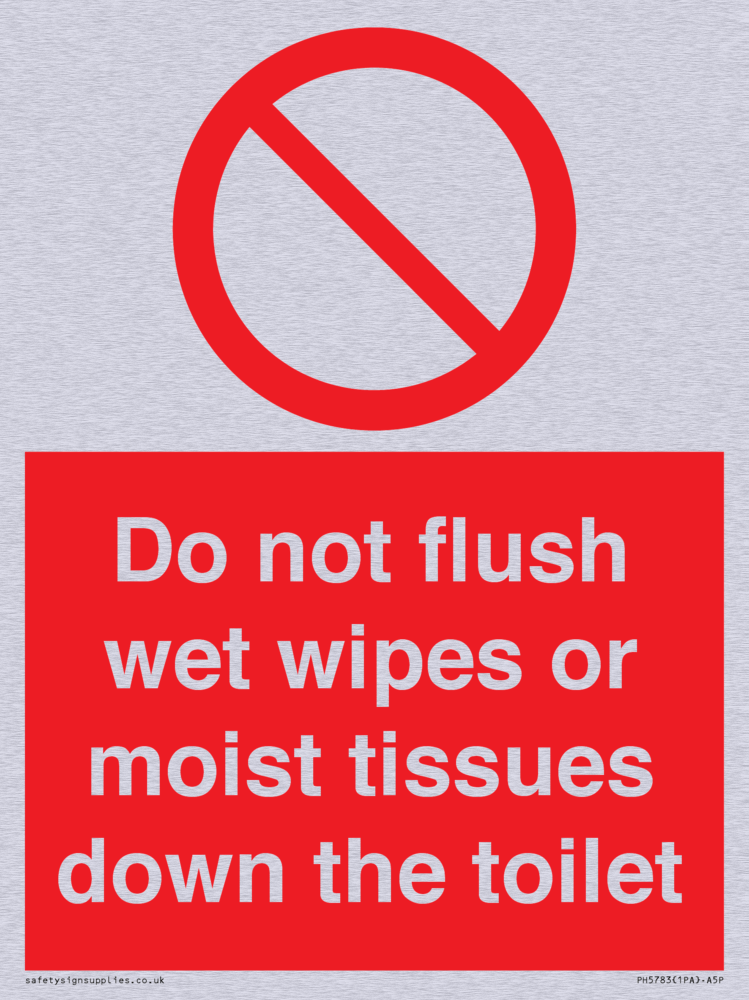 Sign Text: Do not flush wet wipes or moist tissues down the toilet