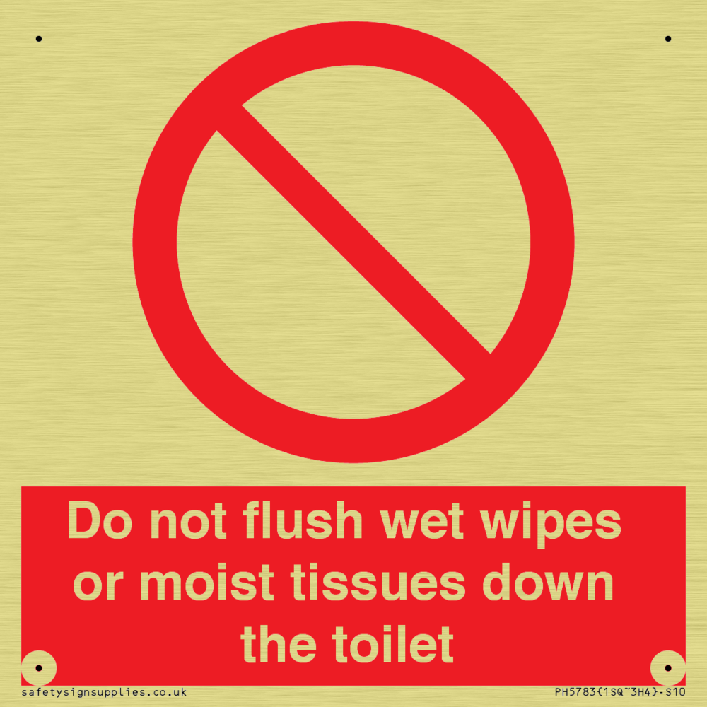 Sign Text: Do not flush wet wipes or moist tissues down the toilet