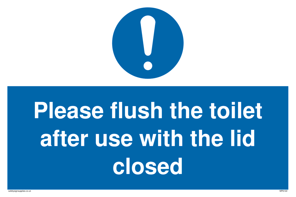 This sign contains a general Mandatory Exclamation Symbol - exclamation mark in white on blue circle background.