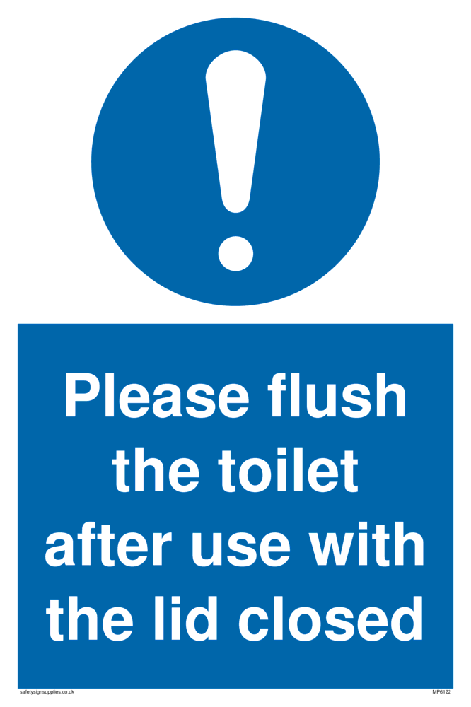This sign contains a general Mandatory Exclamation Symbol - exclamation mark in white on blue circle background.