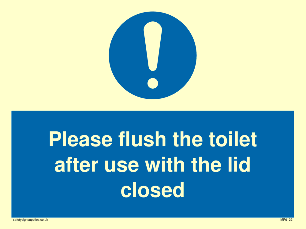 Sign Text: Please flush the toilet after use with the lid closed