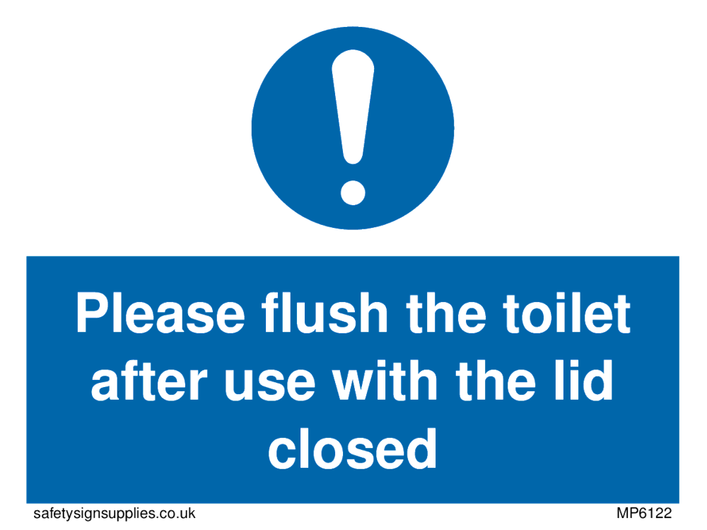 This sign contains a general Mandatory Exclamation Symbol - exclamation mark in white on blue circle background.