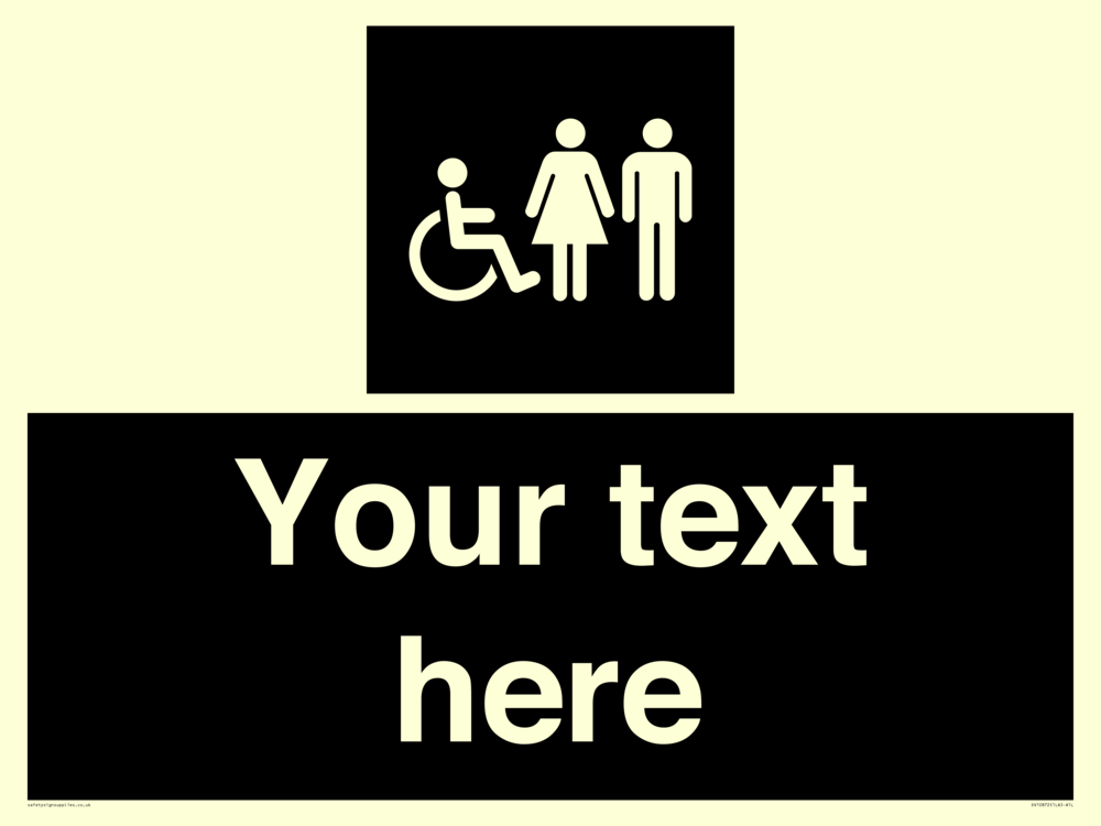 Thickness / Depth: 170microns Durability: 3-5 years Mounting Surface: Window / Glass Materials: Sticker Material Colour: Glow in the Dark Language: ENGLISH Language (EN) Symbol: I046 : Disabled, Female and Male in black panel Internal Layout: 1LA : 1 landscape pod in a Landscape Unit Dimension: 800x600mm Region: UK