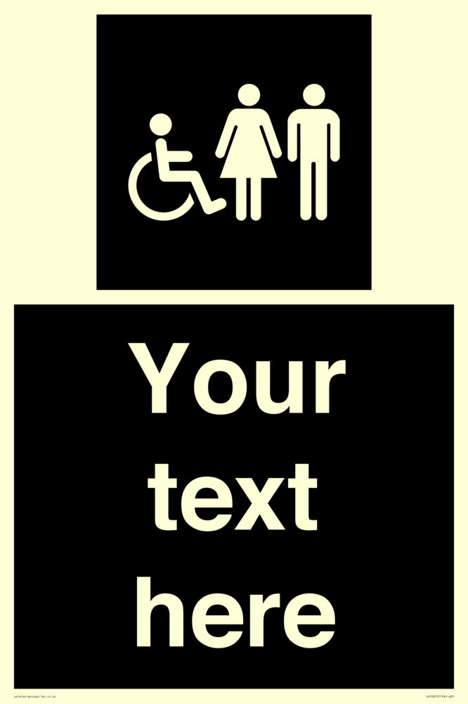 Thickness / Depth: 170microns Durability: 3-5 years Mounting Surface: Window / Glass Materials: Sticker Material Colour: Glow in the Dark Language: ENGLISH Language (EN) Symbol: I046 : Disabled, Female and Male in black panel Internal Layout: 1PA : 1 portrait pod in a Portrait Unit Dimension: 400x600mm Region: UK