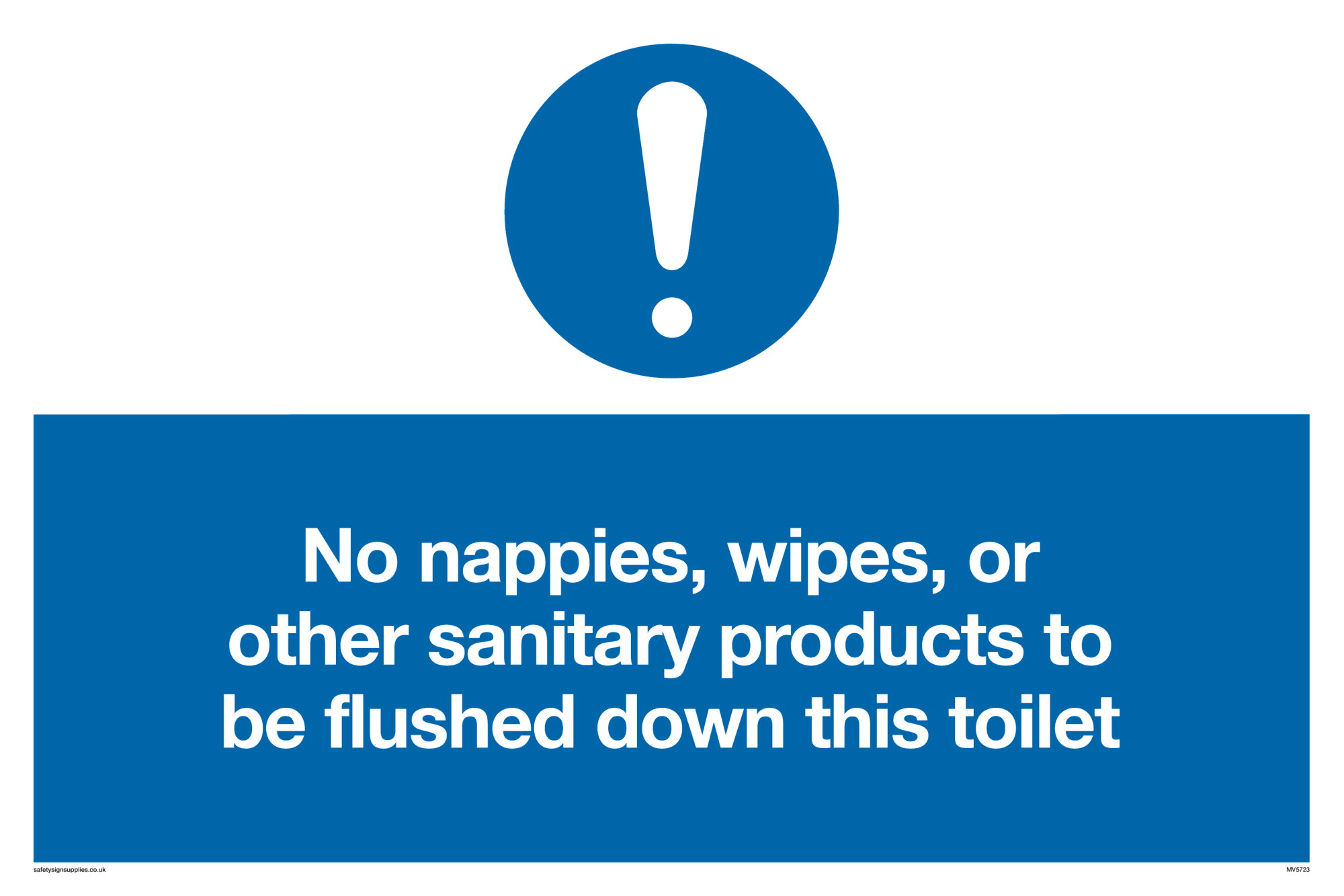 This sign contains a general Mandatory Exclamation Symbol - exclamation mark in white on blue circle background.