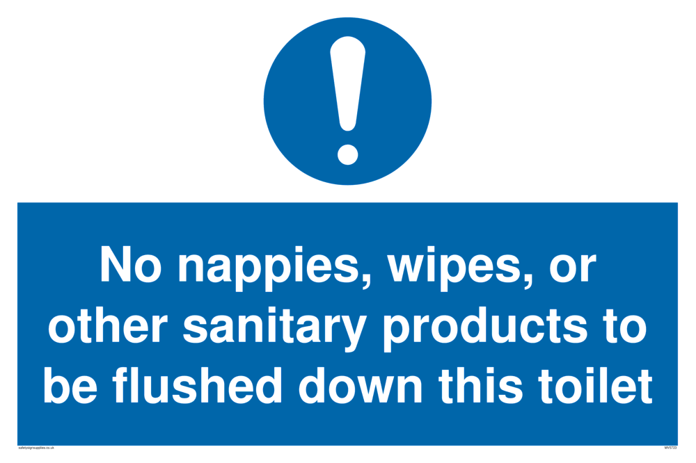 This sign contains a general Mandatory Exclamation Symbol - exclamation mark in white on blue circle background.