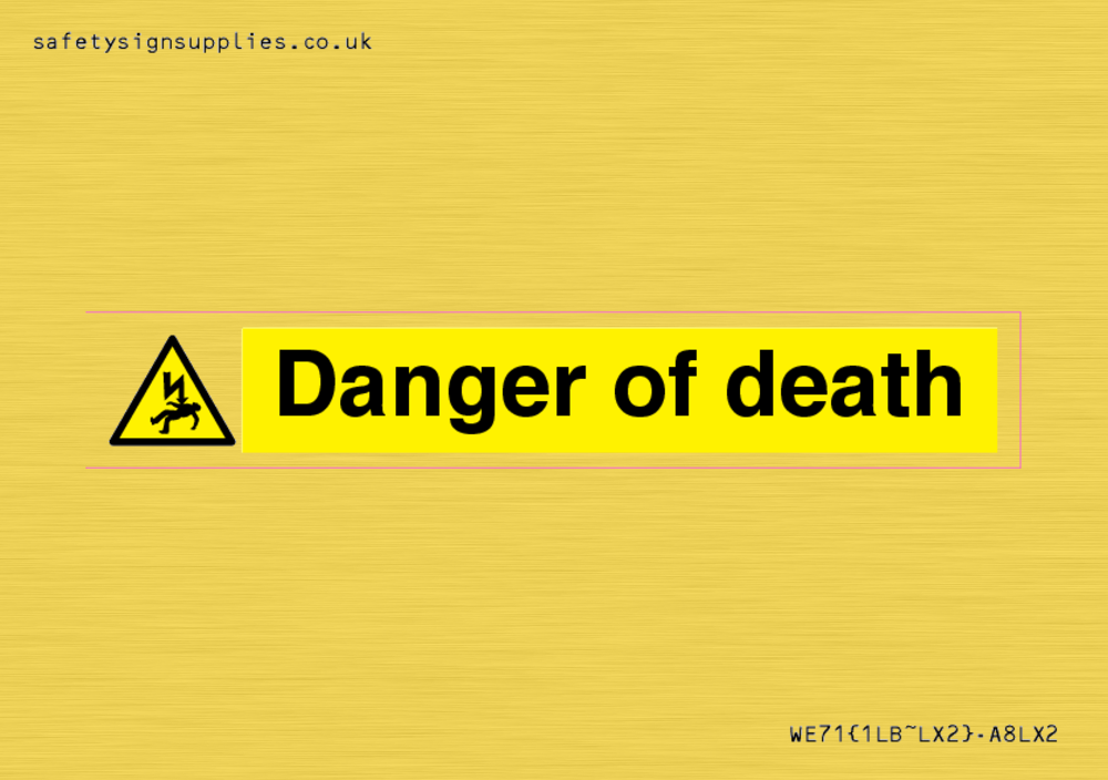 Sign Text: Danger of death Product Type: Warning Safety Signs Material: Vinyl Gold sticker Text Colour: White Background Colour: Yellow Thickness / Depth: 64microns More...