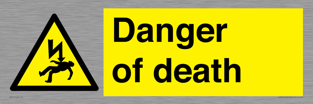 Sign Text: Danger of death Product Type: Warning Safety Signs Dimensions: 450x150mm Material: Stainless Steel Text Colour: White Background Colour: Yellow More...