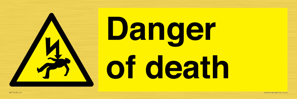 Sign Text: Danger of death Product Type: Warning Safety Signs Dimensions: 450x150mm Material: Vinyl Gold sticker Text Colour: White Background Colour: Yellow More...