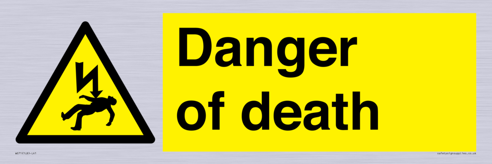 Sign Text: Danger of death Product Type: Warning Safety Signs Dimensions: 450x150mm Material: Plastic Semi-rigid Silver Text Colour: White Background Colour: Yellow More...