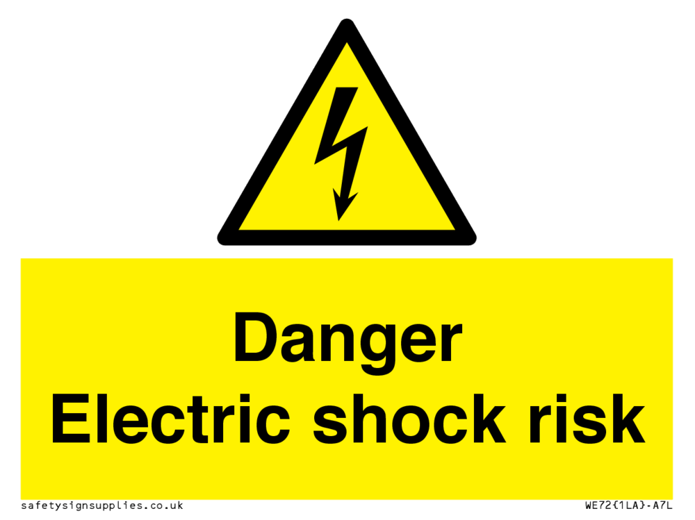 Sign Text: Danger Electric shock risk Product Type: Warning Safety Signs Dimensions: 100x75mm Material: Plastic Semi-rigid 1mm Orientation: Landscape Text Colour: White More...