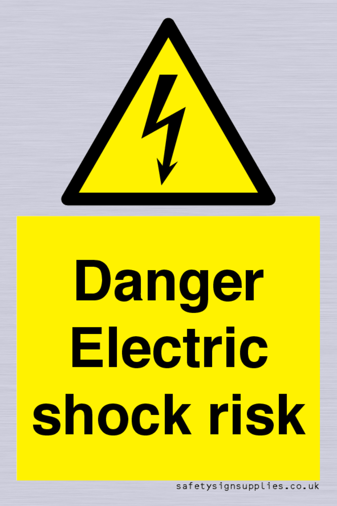 Sign Text: Danger Electric shock risk Product Type: Warning Safety Signs Dimensions: 50x75mm Material: Plastic Semi-rigid Silver Orientation: Portrait Text Colour: White More...
