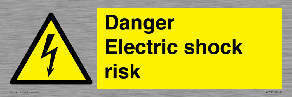 Sign Text: Danger Electric shock risk Product Type: Warning Safety Signs Dimensions: 300x100mm Material: Stainless Steel Text Colour: White Background Colour: Yellow More...
