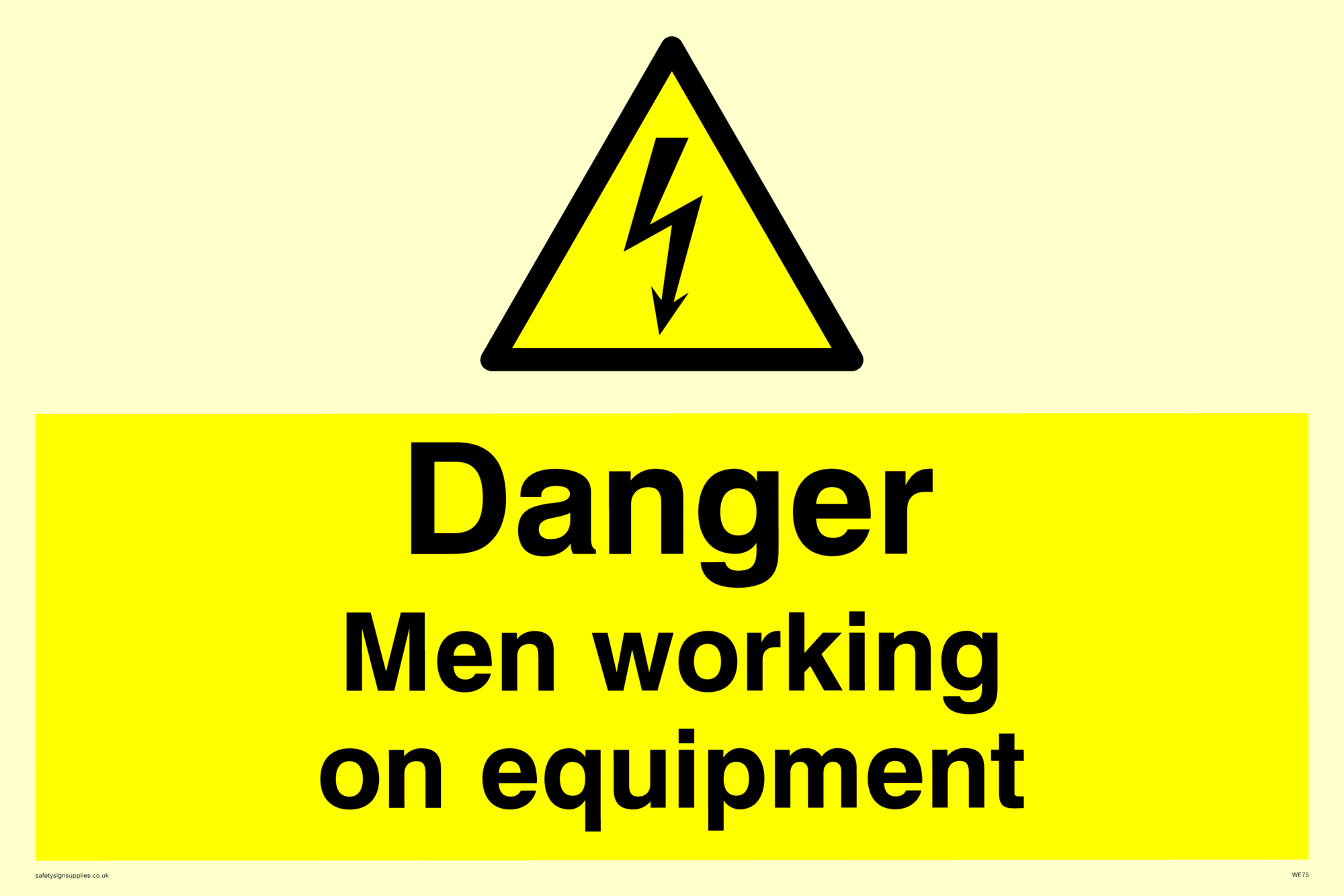 This sign contains an electrical warning symbol. Lightning flash in black on yellow warning triangle with black border.