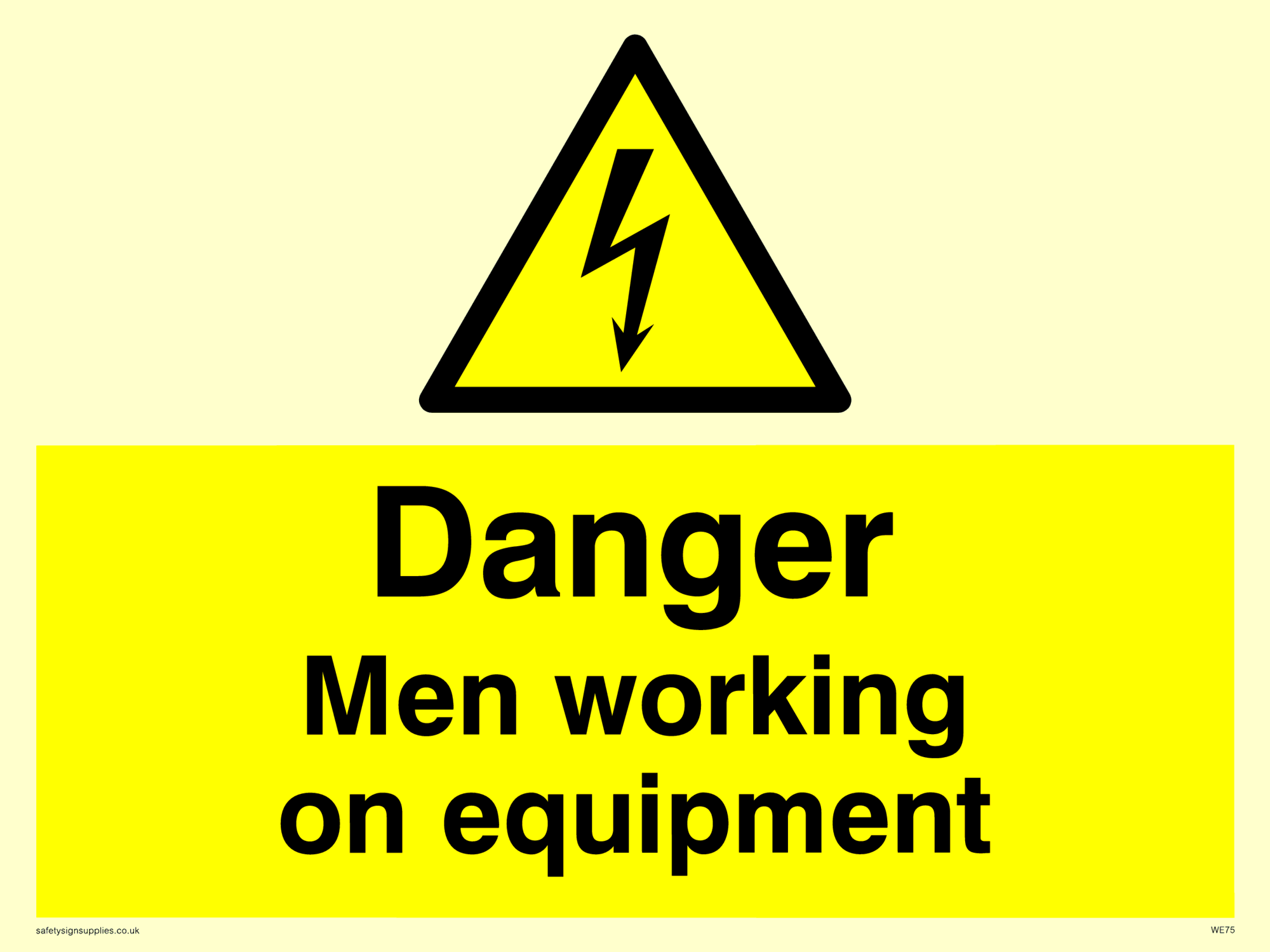 This sign contains an electrical warning symbol. Lightning flash in black on yellow warning triangle with black border.
