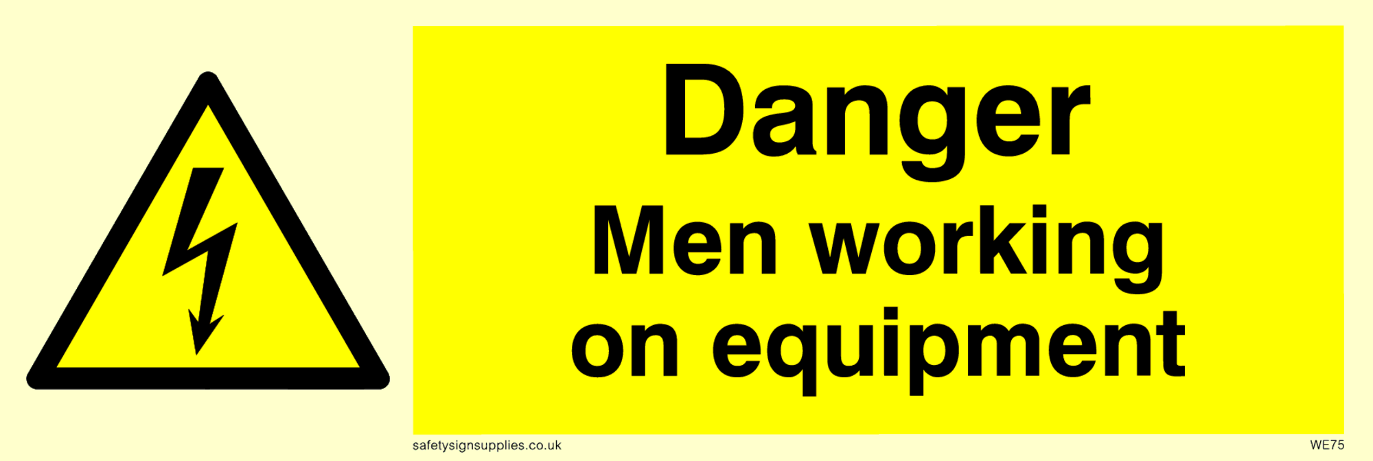 This sign contains an electrical warning symbol. Lightning flash in black on yellow warning triangle with black border.