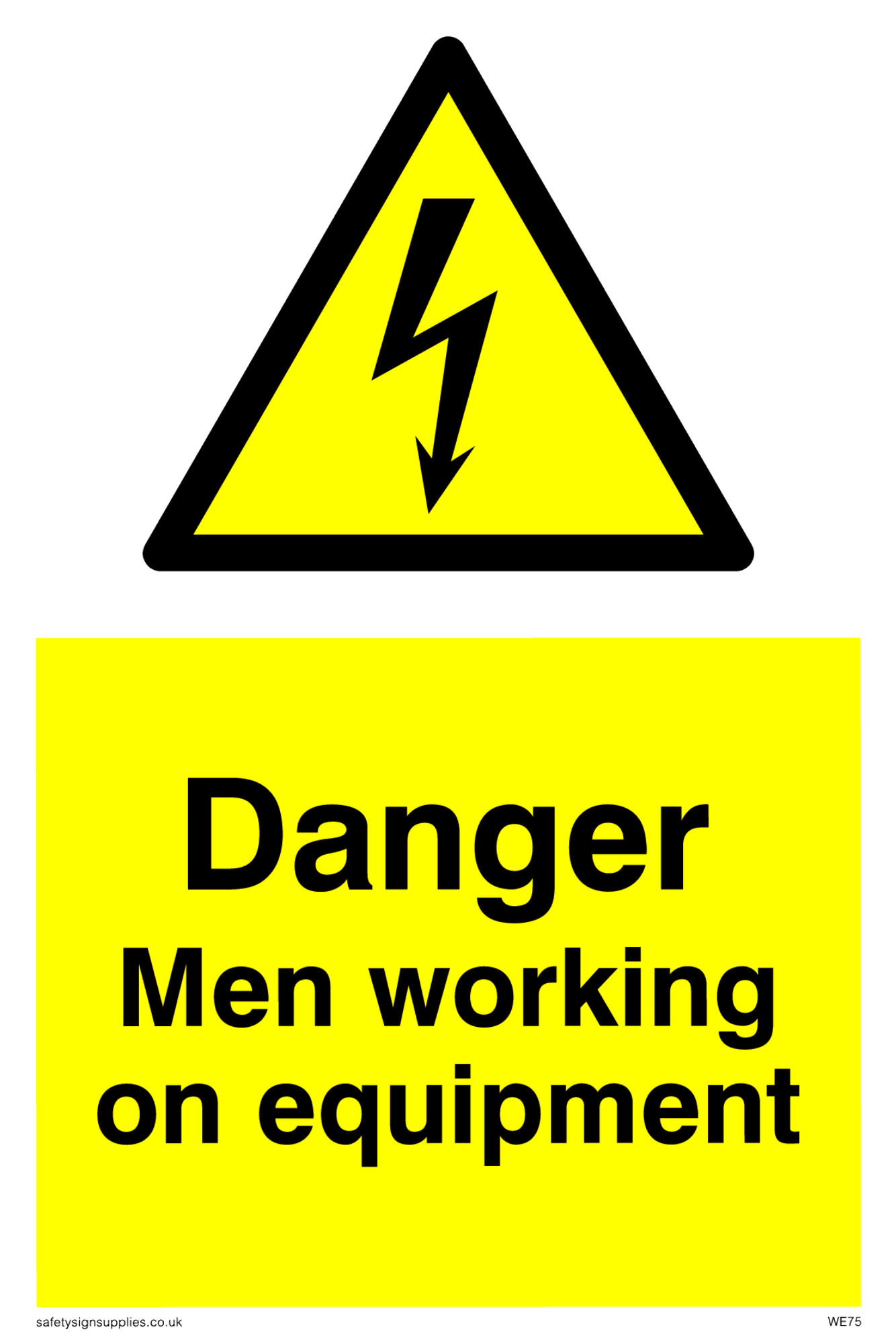 This sign contains an electrical warning symbol. Lightning flash in black on yellow warning triangle with black border.