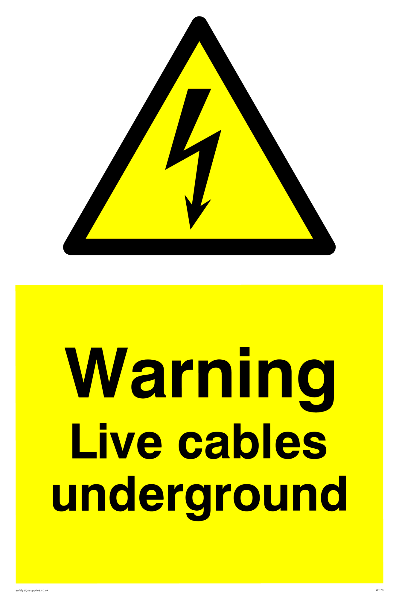 This sign contains an electrical warning symbol. Lightning flash in black on yellow warning triangle with black border.
