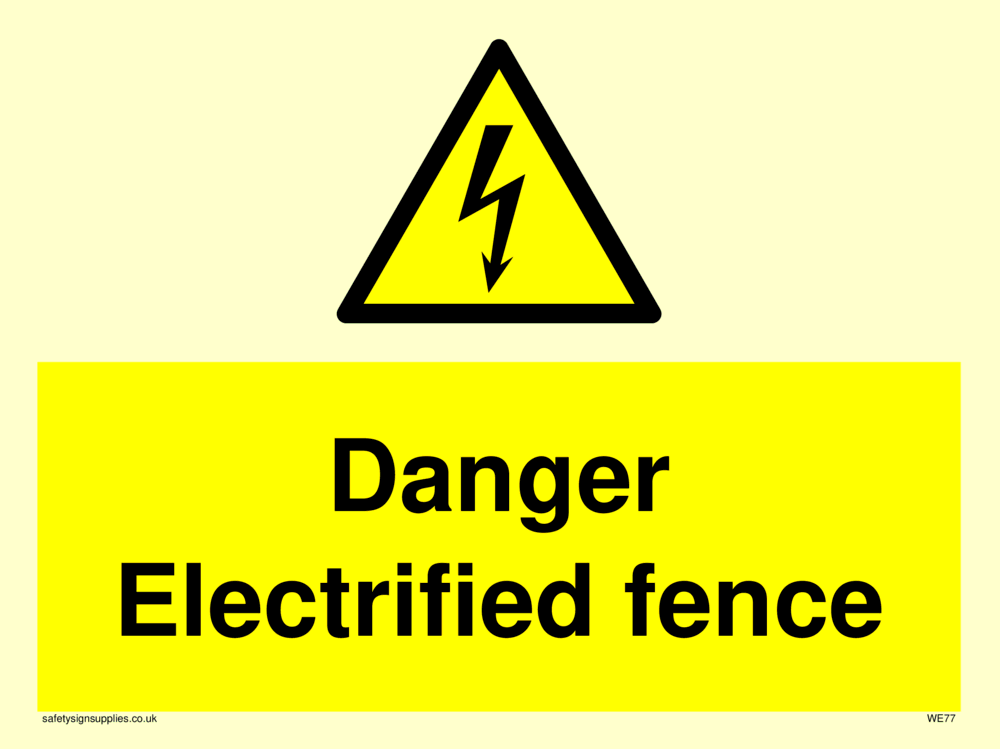 This sign contains an electrical warning symbol. Lightning flash in black on yellow warning triangle with black border.