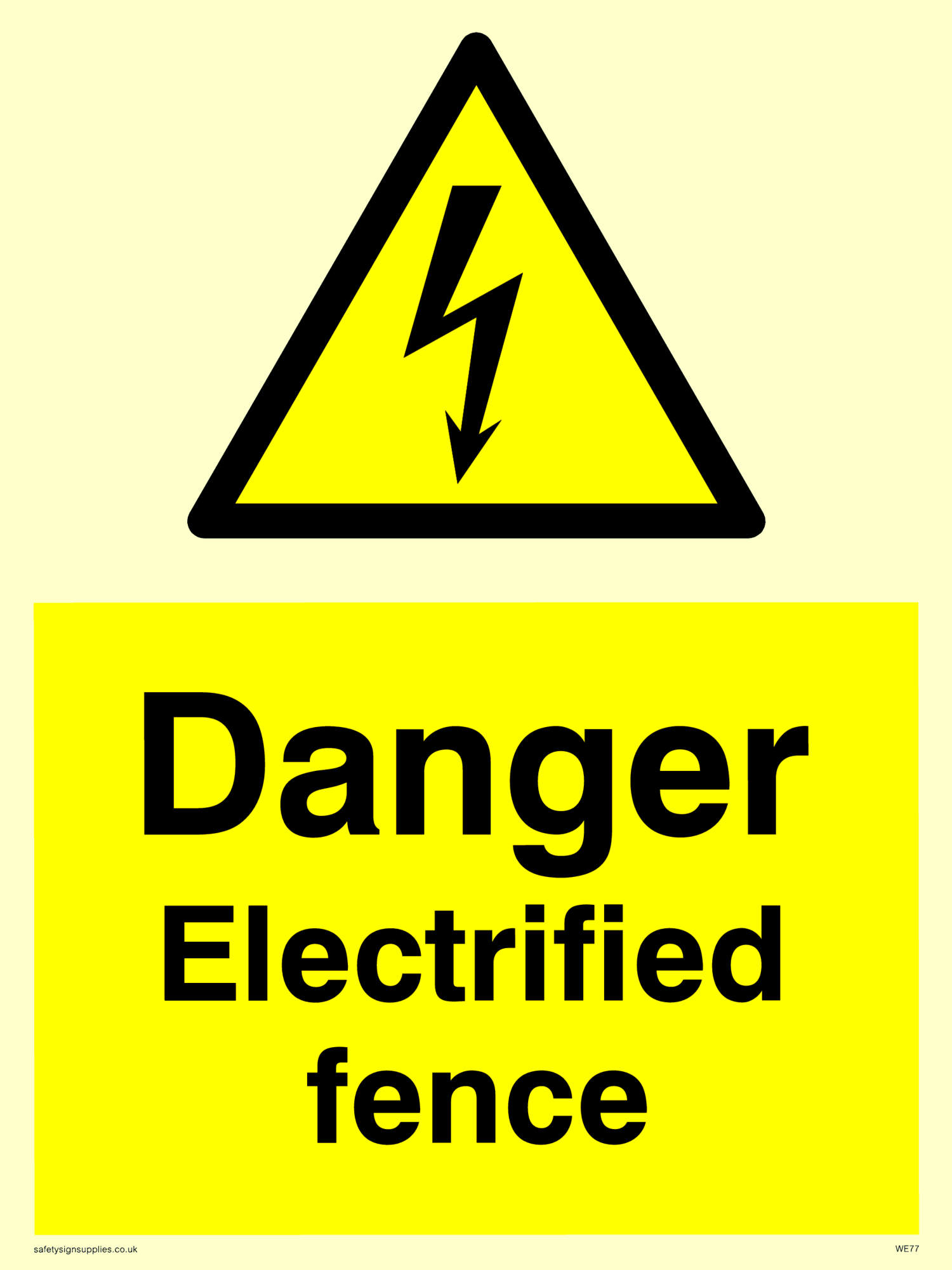 This sign contains an electrical warning symbol. Lightning flash in black on yellow warning triangle with black border.