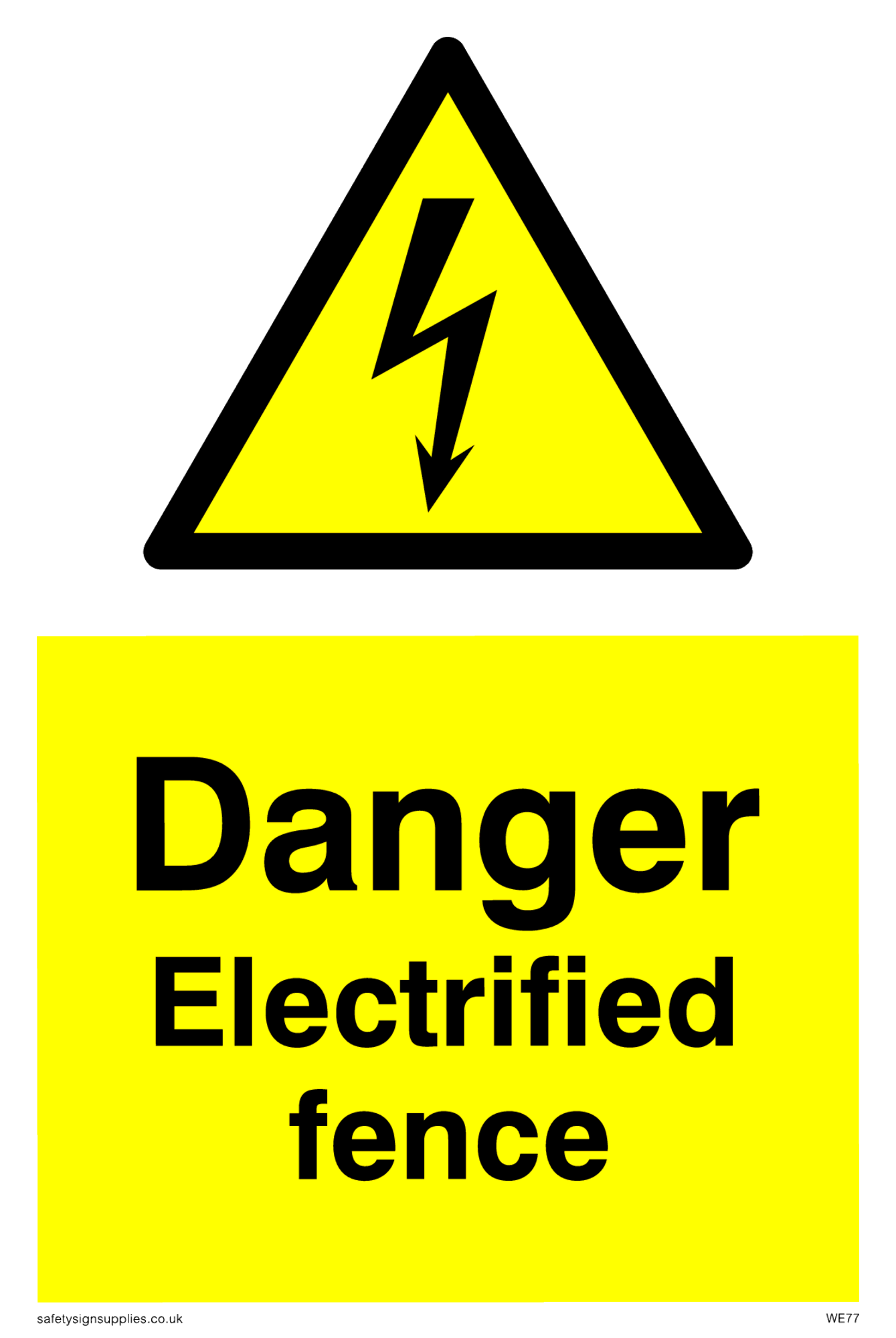 This sign contains an electrical warning symbol. Lightning flash in black on yellow warning triangle with black border.