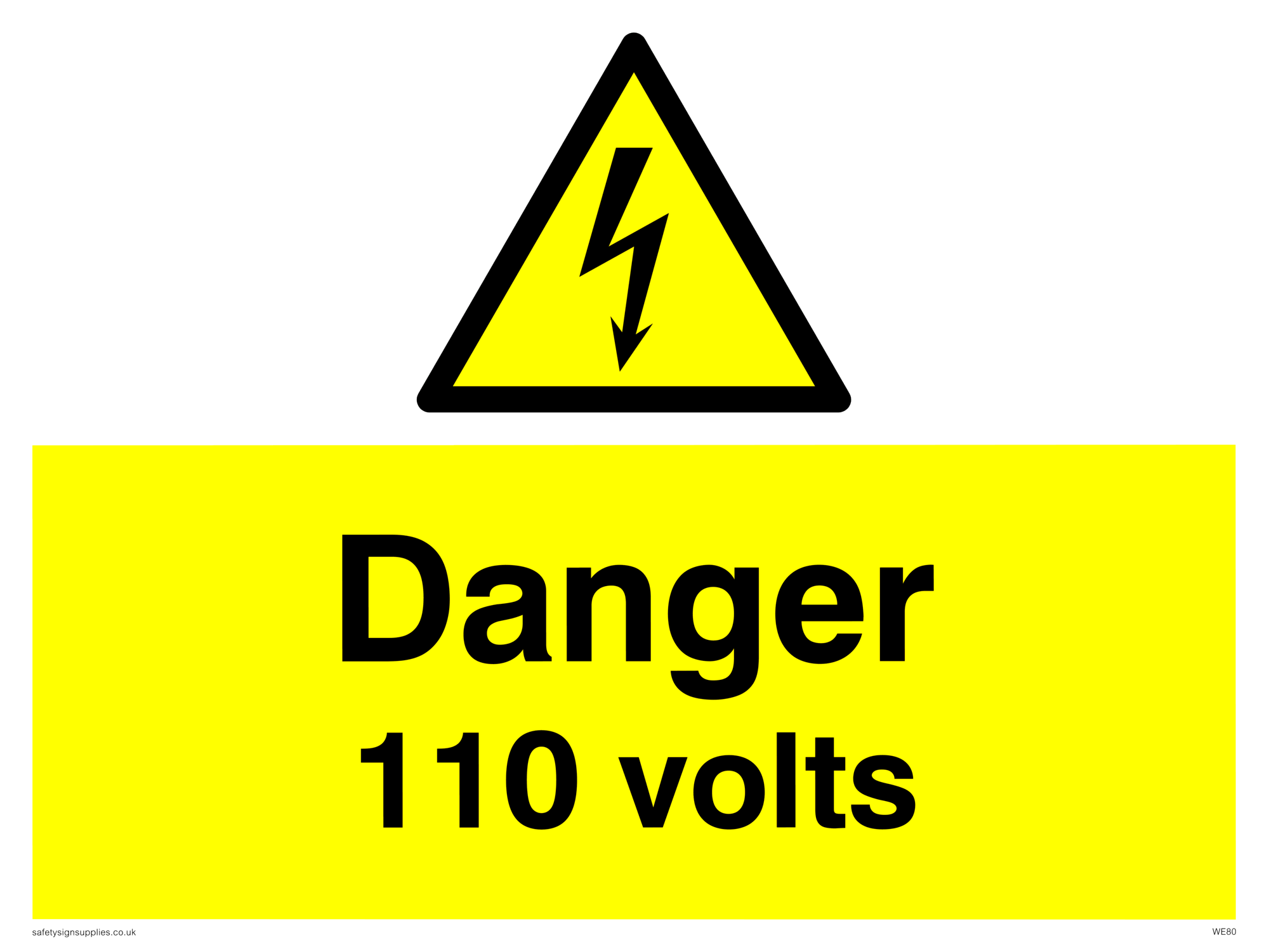 This sign contains an electrical warning symbol. Lightning flash in black on yellow warning triangle with black border.