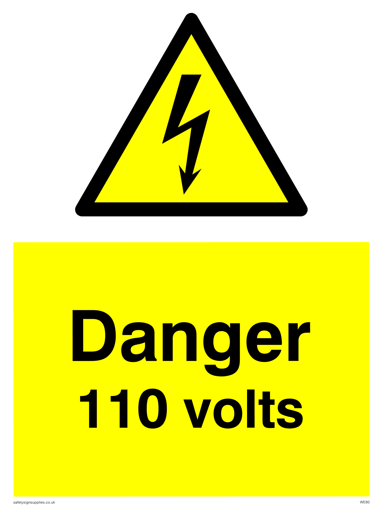 This sign contains an electrical warning symbol. Lightning flash in black on yellow warning triangle with black border.