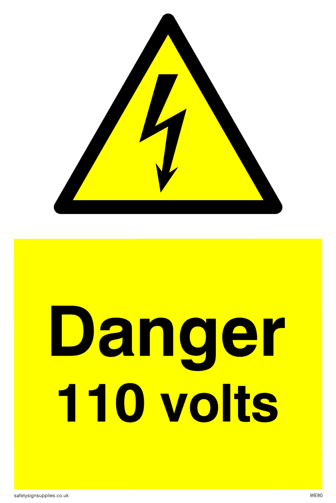 This sign contains an electrical warning symbol. Lightning flash in black on yellow warning triangle with black border.