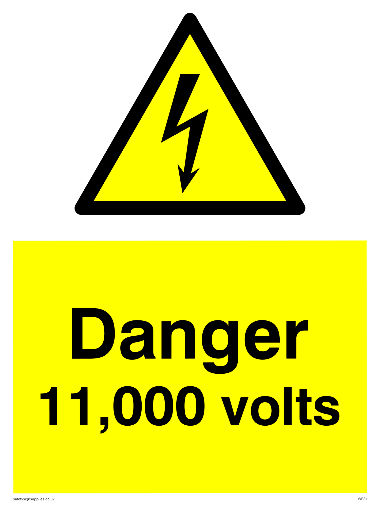 This sign contains an electrical warning symbol. Lightning flash in black on yellow warning triangle with black border.