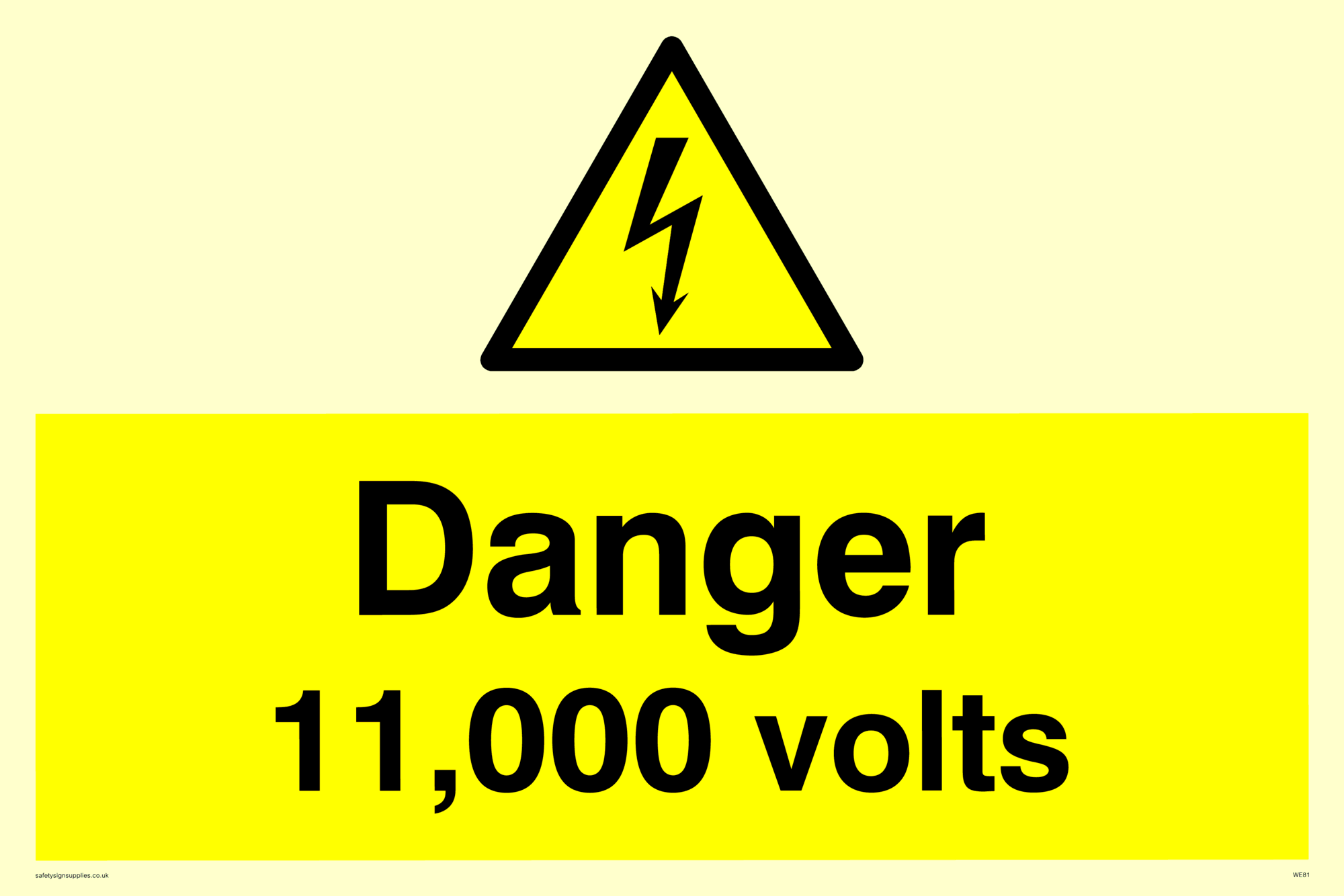 This sign contains an electrical warning symbol. Lightning flash in black on yellow warning triangle with black border.