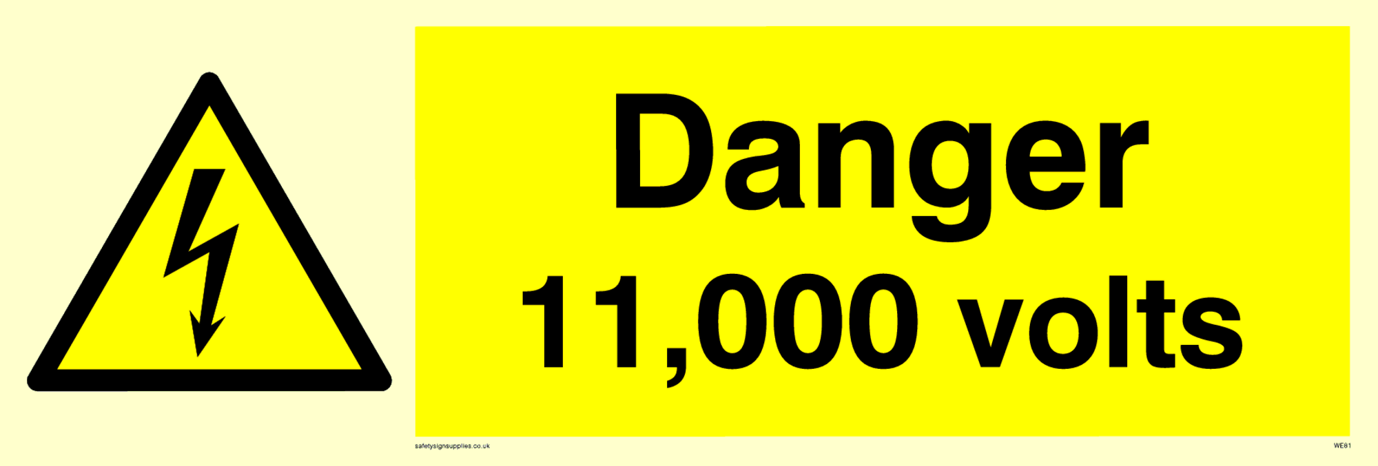 This sign contains an electrical warning symbol. Lightning flash in black on yellow warning triangle with black border.